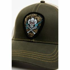 Promo 🎁 Moonshine Spirit Men’s Skull Guitar Pick Logo Embroidered Patch Mesh Back Ball Cap Olive 🥰