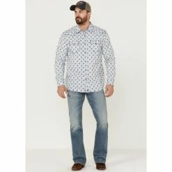 Promo 🎉 Moonshine Spirit Men’s Bloom Floral Print Long Sleeve Snap Western 👕 Shirt Light Blue 💯
