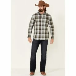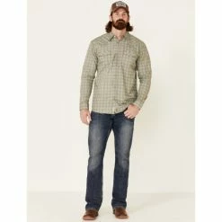 Best Pirce 🤩 Moonshine Spirit Men’s Tuskegee Plaid Long Sleeve Snap Western 👚 Shirt Forest Green 🤩
