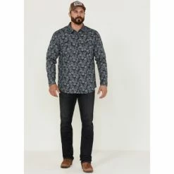 Best Pirce 🧨 Moonshine Spirit Men’s Amusement Large Paisley Print Long Sleeve Western 👕 Shirt Navy 😍