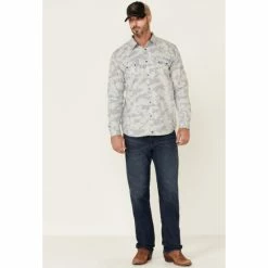 Hot Sale ⭐ Moonshine Spirit Men’s Dispatch Camo Print Long Sleeve Snap Western 👕 Shirt Light Blue ⭐