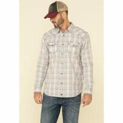 Deals ⭐ Moonshine Spirit Men’s Tuning Fork Plaid Print Long Sleeve Snap Western 👚 Shirt White 🎉