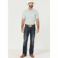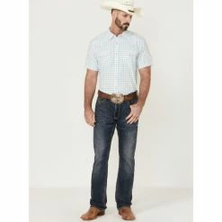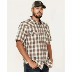 Brand new 🥰 Moonshine Spirit Men’s River Delta Small Plaid Short Sleeve Snap Western 👚 Shirt Cream 🤩