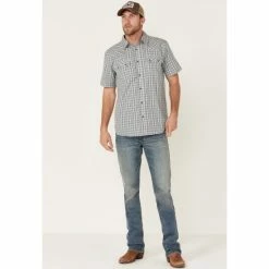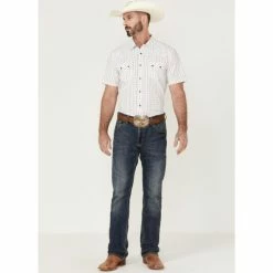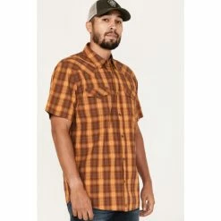 Cheapest ⭐ Moonshine Spirit Men’s Santa Fe Dobby Plaid Short Sleeve Snap Western 👕 Shirt Tan 🔔