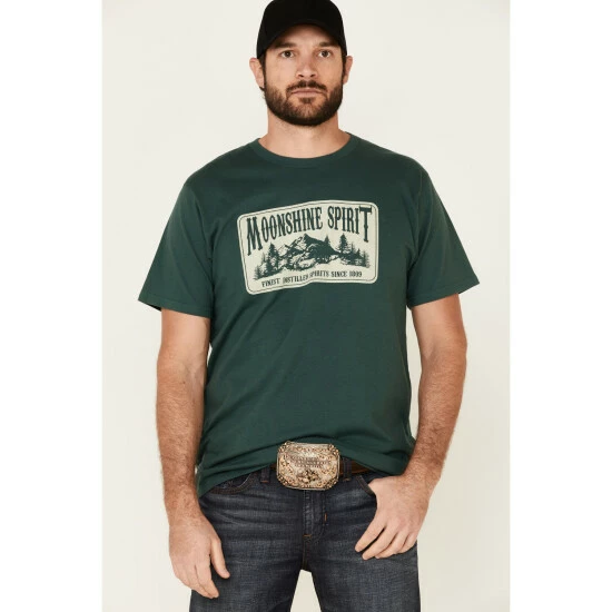 - “Moonshine Spirit Finest Distilled Spirits Since 1809” mountains graphic on front