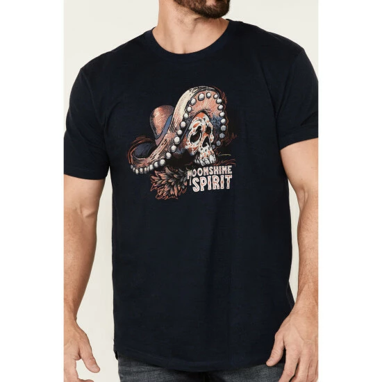 - “Moonshine Spirit” w/ sombero wearing sugar skull & flower graphic on front