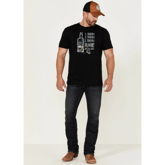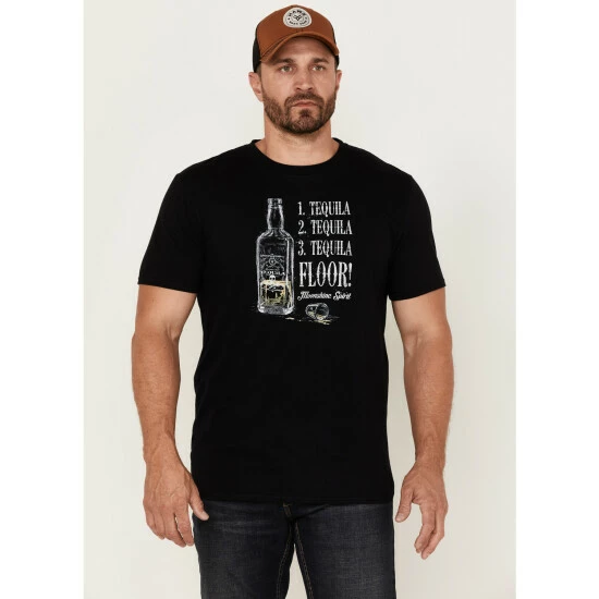 - “1 Tequila, 2 Tequila, 3 Tequila, Floor” with bottle and logo graphic on front