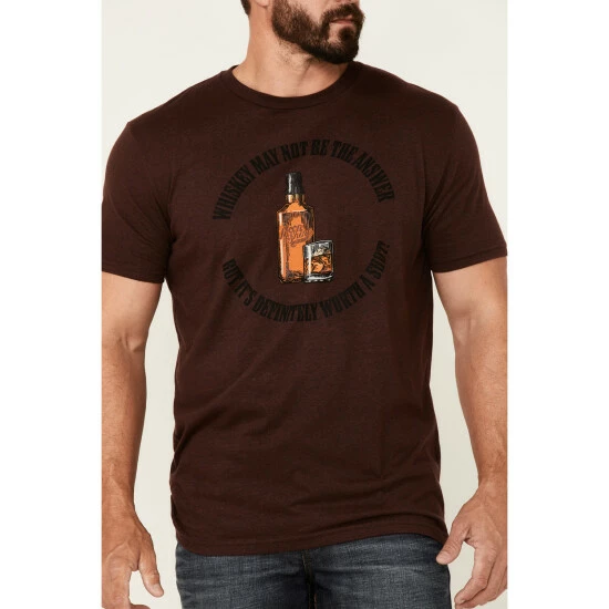 - “Whiskey May Not Be The Answer But It’s Worth A Shot” w/ whiskey bottle and glass graphic on front